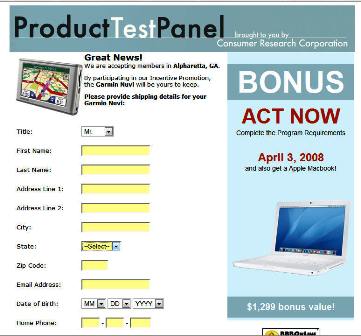 This seems simply too good to be true. Their Google advertisement posted on a GPS website says you can have a FREE Garmin GPS, simply for acting as a tester / evaluator, and meeting a few qualifying conditions.